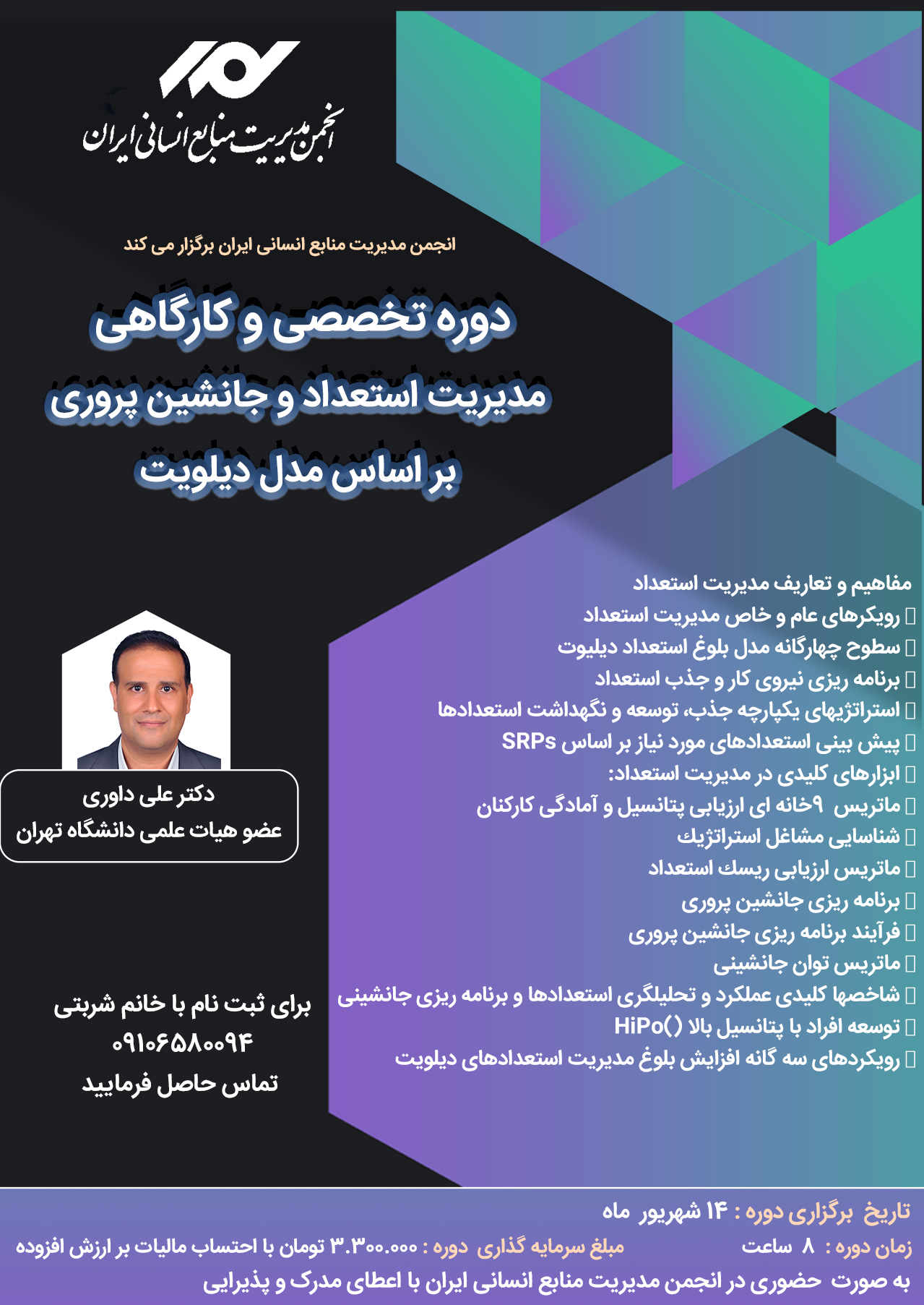 مکان : انجمن مدیریت منابع انسانی ایران به صورت حضوری